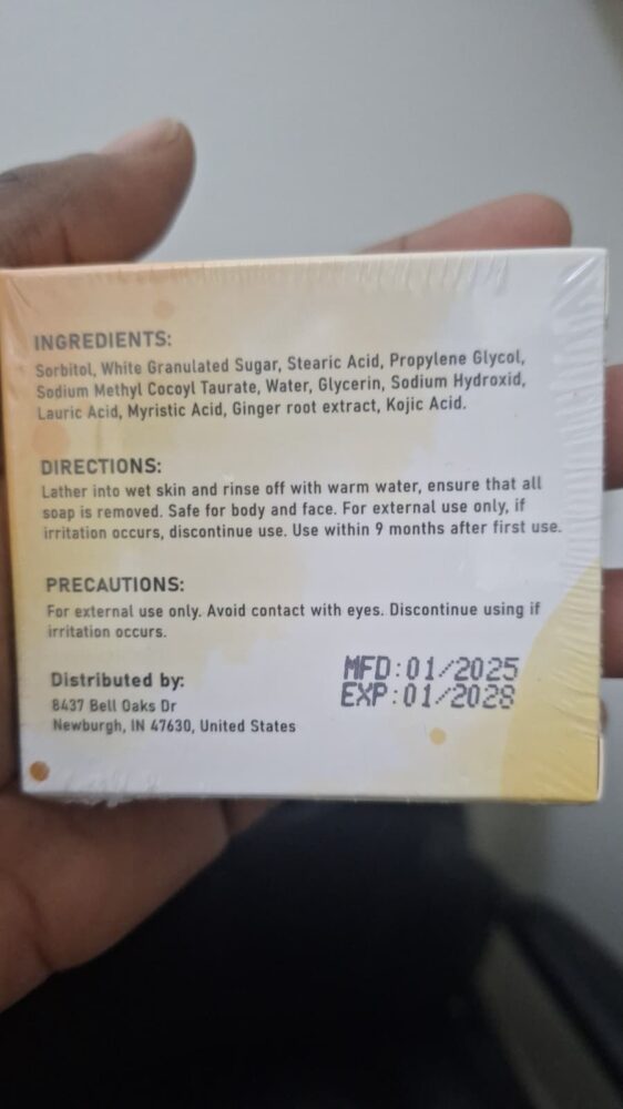 Lauric Acid, Myristic Acid, Ginger root extract, Kojic Acid.